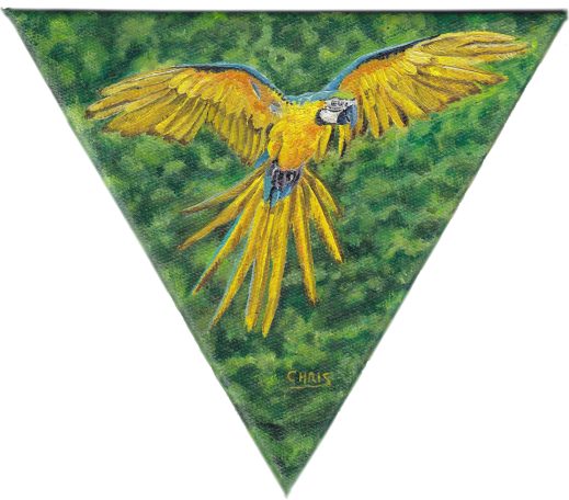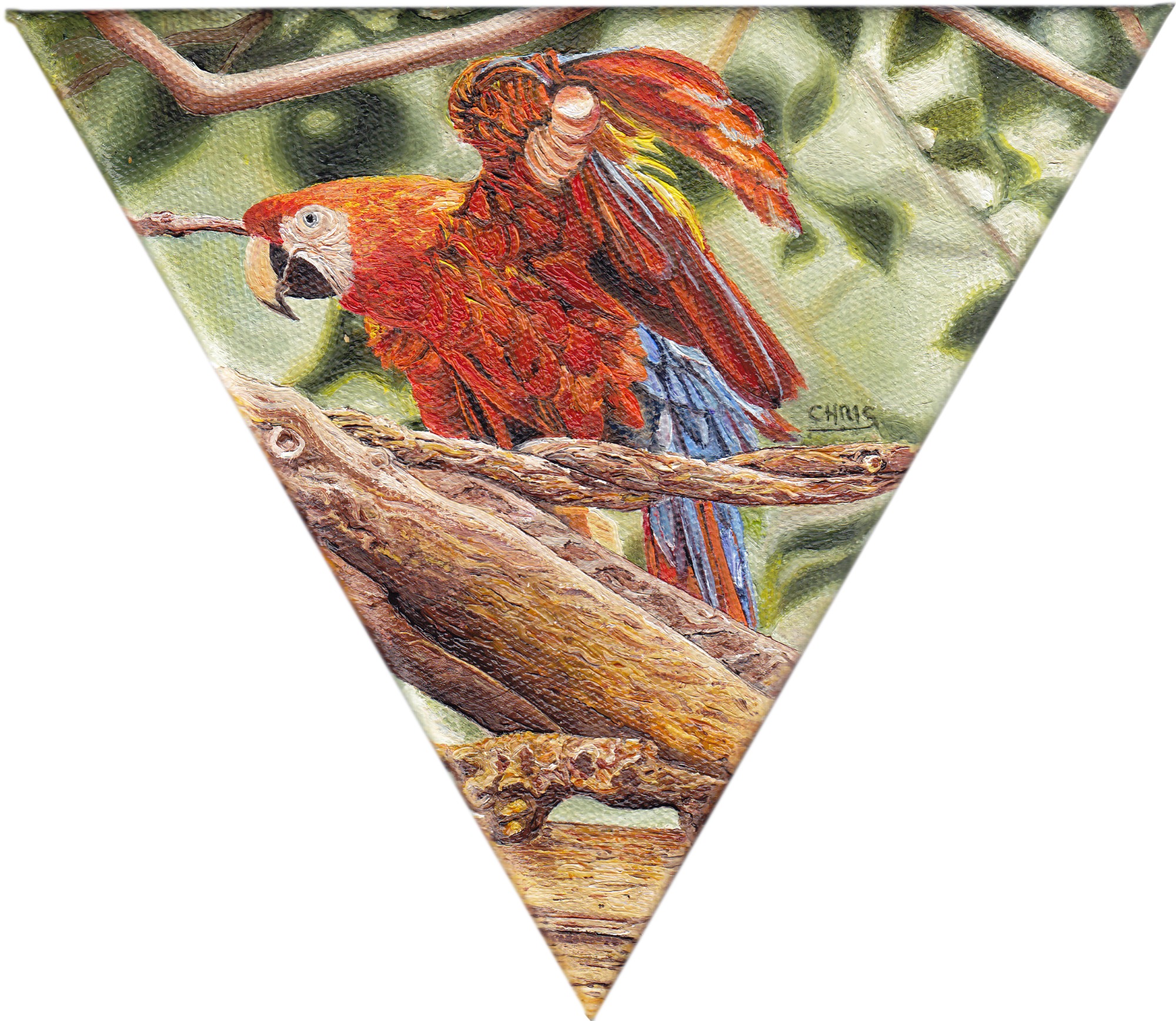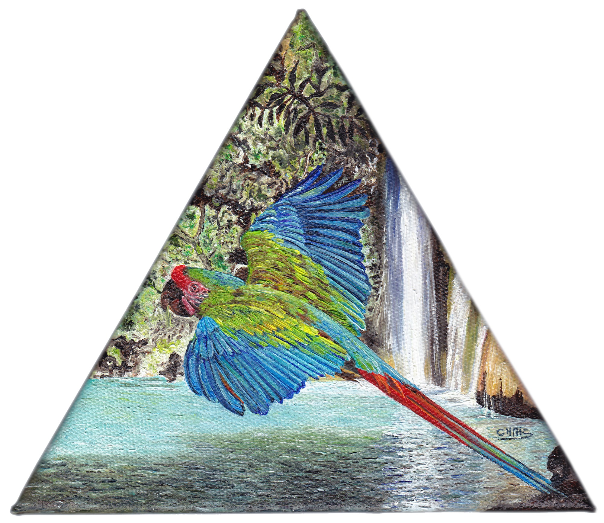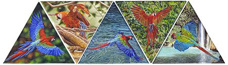 Ensemble de toiles triangulaires, sur le thème des perroquets.