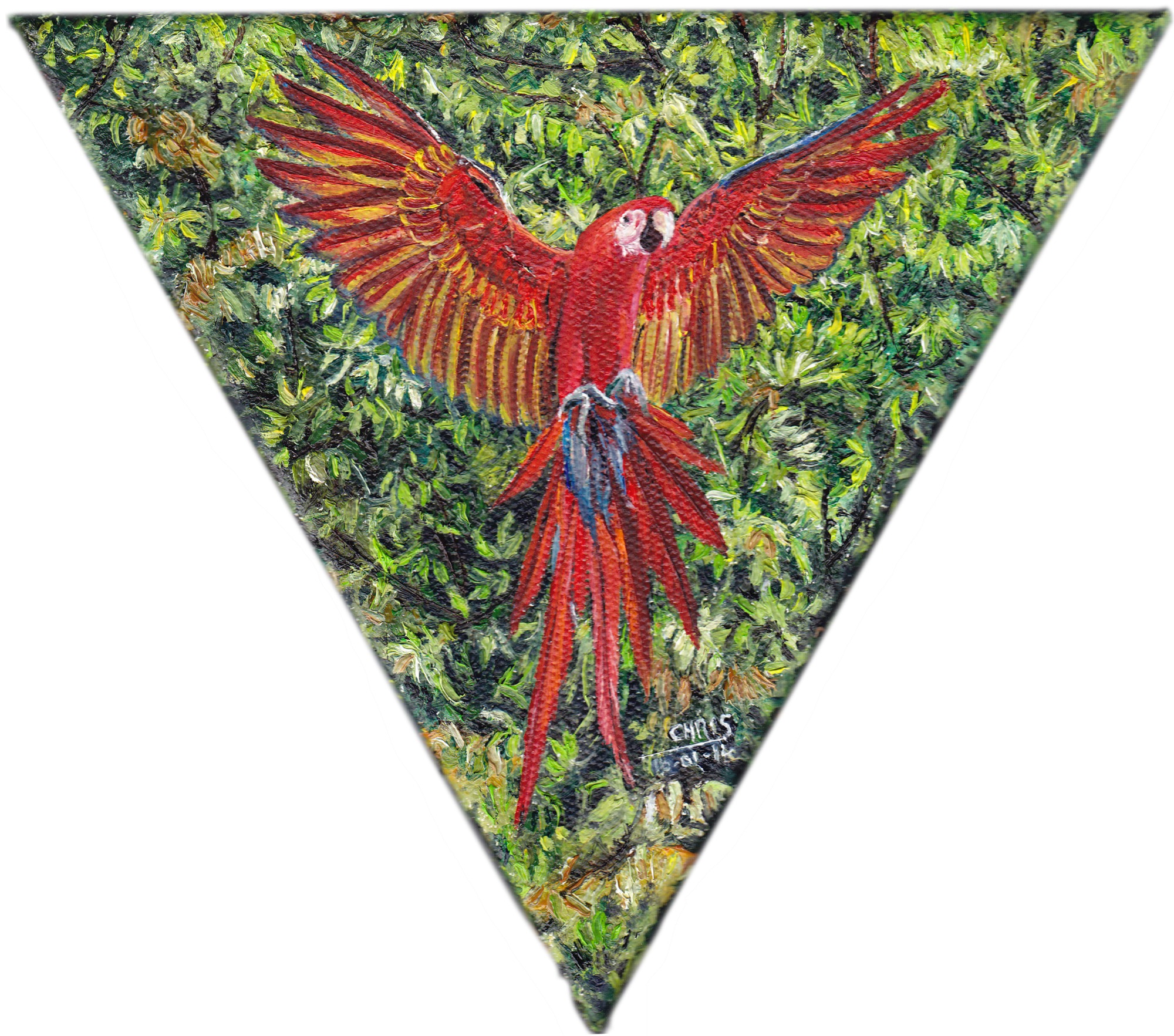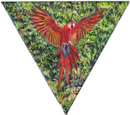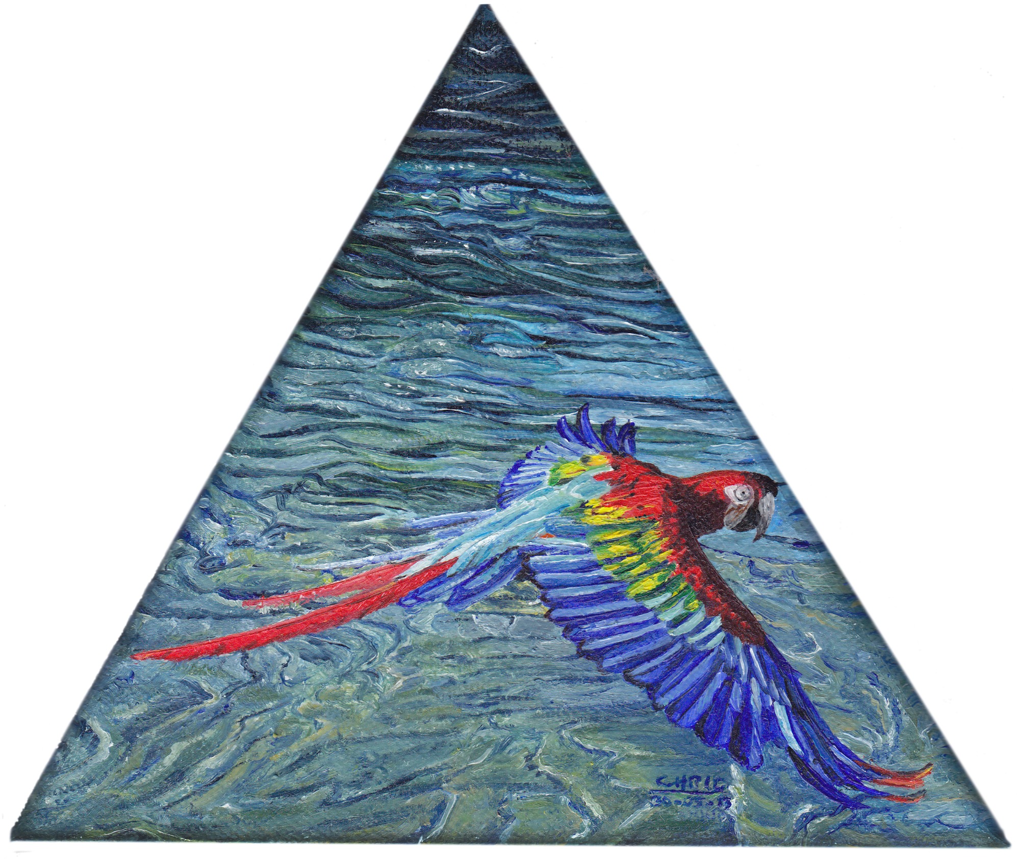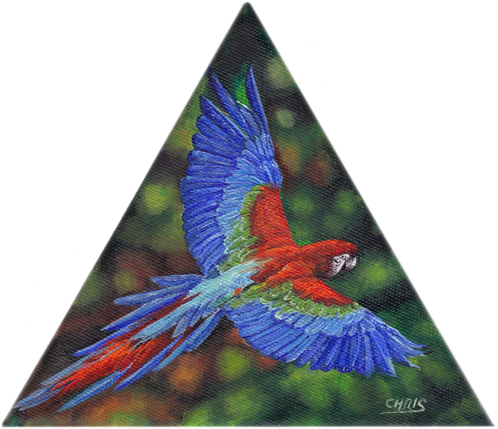 Ensemble de toiles triangulaires, sur le thème des perroquets.