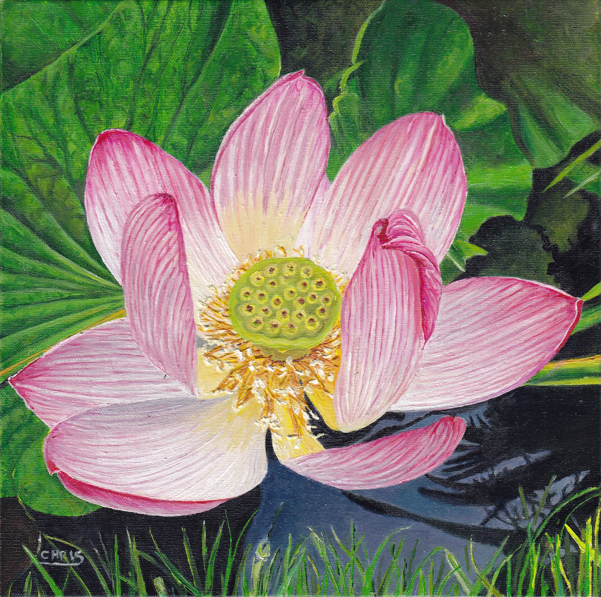 cette composition de 3 toiles présente des nénuphars et des lotus.