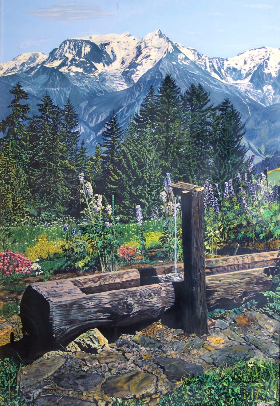 Très impressionnant par sa taille (plus d'1m10 de haut pour près de 80cm de large), ce tableau réalisé à la gouache capture l'essence de la Savoie, où l'on peut admirer une gargouille majestueuse surplombant un paysage montagneux à couper le souffle.